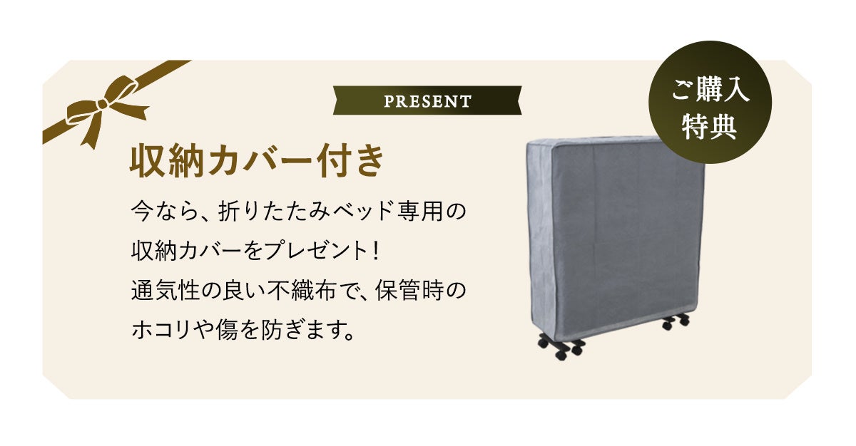 リニューアルを記念し、エムール公式オンラインショップでは12月10日まで先行限定価格で販売いたします。また、今なら、収納時に便利な折りたたみベッド専用のカバーをプレゼントいたします!