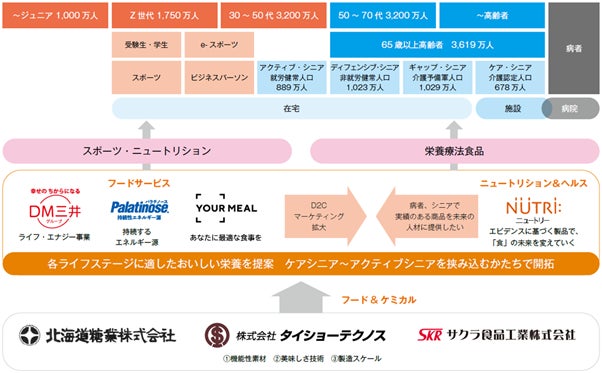 DM三井製糖は、「姿かたちを変えながら一生に寄り添い、幸せの時を広げる。」を企業理念に掲げ、事業ポートフォリオの変革を進めております。特に、ライフ・エナジー事業(以下「LE事業」)を成長領域の一翼と位置づけ、「栄養」・「健康」をキーワードに、グループ各社の持つ知見や技術を活かしながら、若年層からシニア層までそれぞれの世代に合った形で商品とサービスを提供する“Nutrition By Life Stage”を実現し、“人と社会の幸せの ちからになる”ことを目指しています。