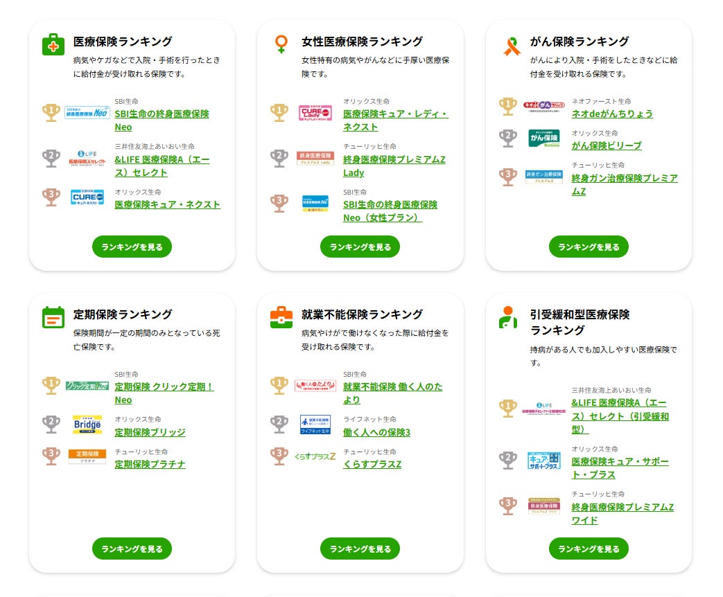 ※ランキングは各保険商品の優劣や推奨を示すものではなく、特定期間の申込件数、資料請求件数、及びアクセス数に基づいて作成したものです。