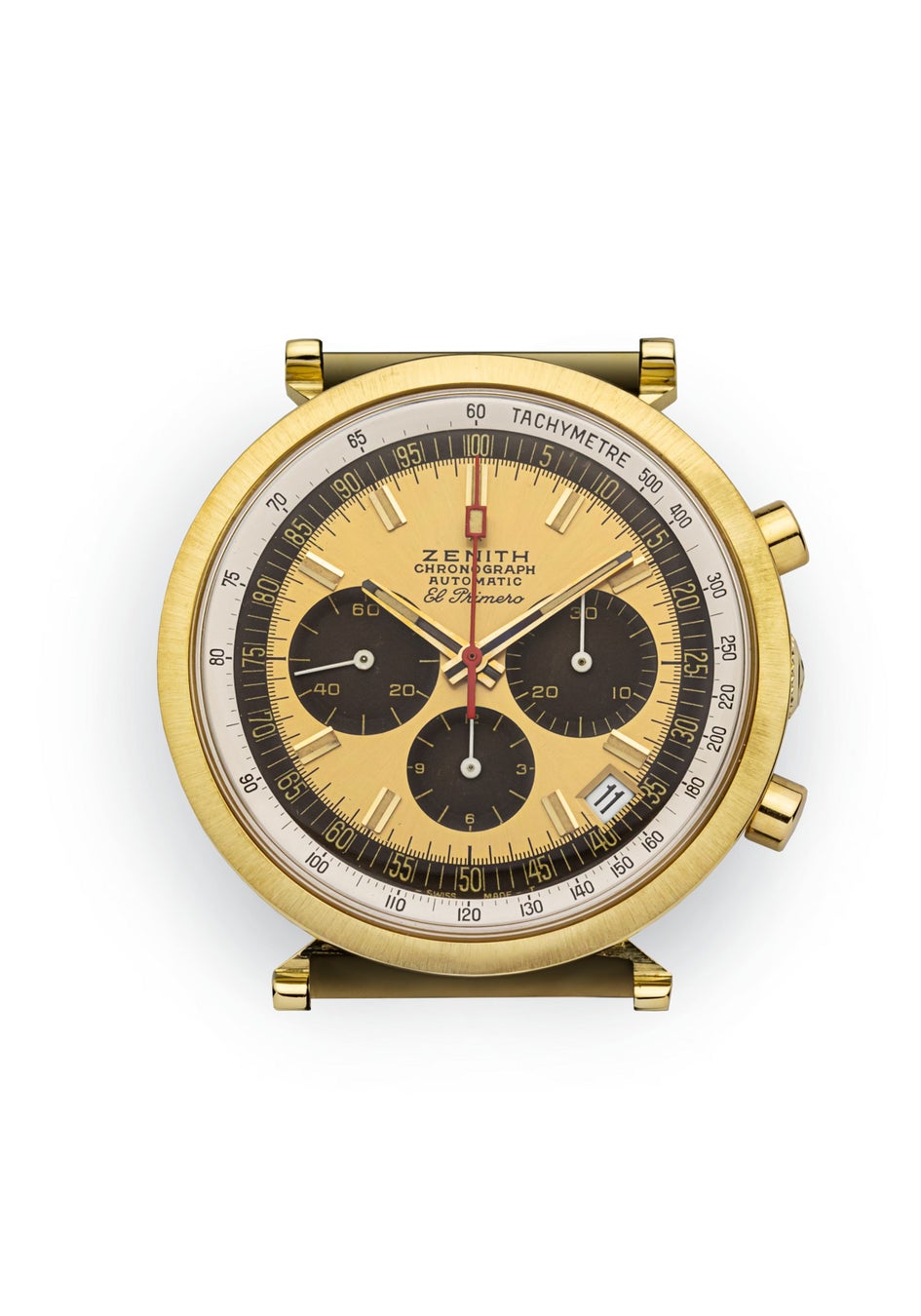 特長:1969年、エル・プリメロの初期モデル。少量生産(総生産数が1000本未満)にもかかわらず、記録的な受注数を達成した人気モデル。クォーツが機械式時計に挑戦し始めた時期に生産されたリファレンスの最後のロットの一つ。アメリカ市場向けに作られ、31石ではなく17石で構成。