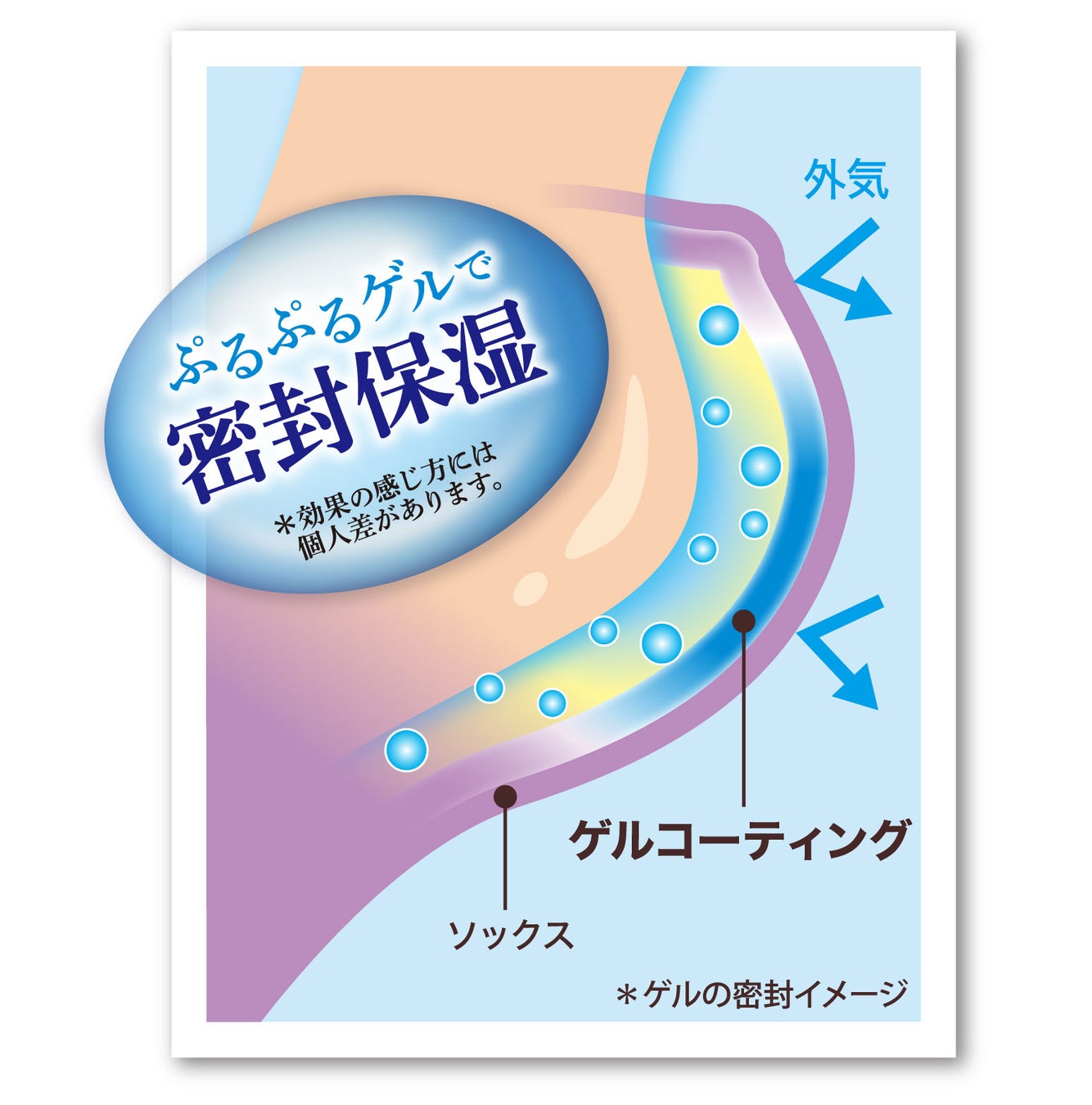 保湿密封力に優れた靴下内側のハイドロゲルが、外部からの刺激や乾燥からかかとを守ります。さらに、乾燥が気になる時に履いて寝るだけで、お肌に必要な体温や油分・保湿クリームの美容成分を朝まで逃がさずに集中密封(※2)。