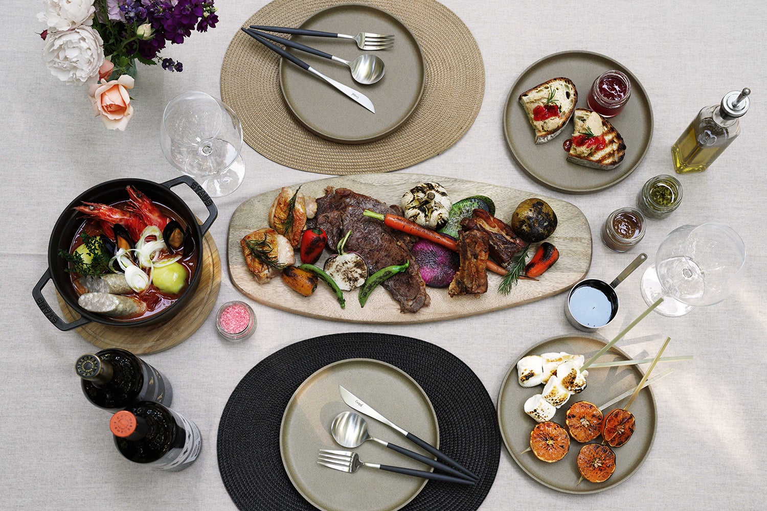 ・STAUBブイヤベーススタイル、有頭海老、ムール貝