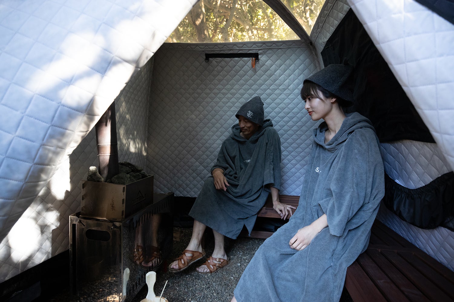 また、事前予約か専用プランの申し込みでテント式のアウトドアサウナを体験頂けます。ロシアのテントサウナブランド、MORZH(モルジュ)のテントサウナをご用意。燃え上がる薪の音を聴きながら、本格的なアウトドアサウナをお楽しみください。隣接するアウトドアバスでの水風呂と、満点の星空の下での外気浴、都会から離れた非日常空間で、「自然と一体化した整う」体験をお楽しみ頂けます。