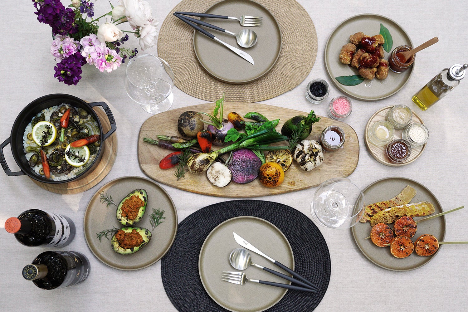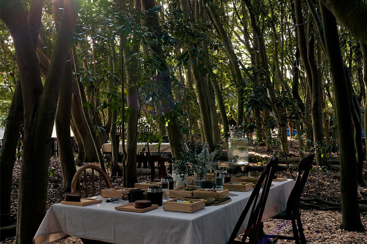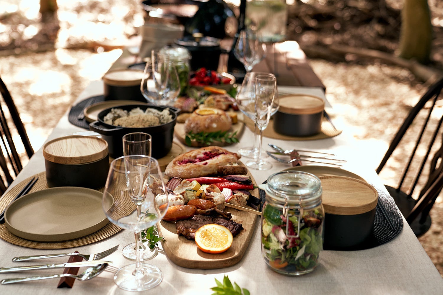 森の中にゆるやかに仕切られたプライベート空間で、地元千葉の提携農家から届く厳選した新鮮食材を使用したBBQを。アレンジ・レシピ&テーブルコーディネートとセットでご提供。