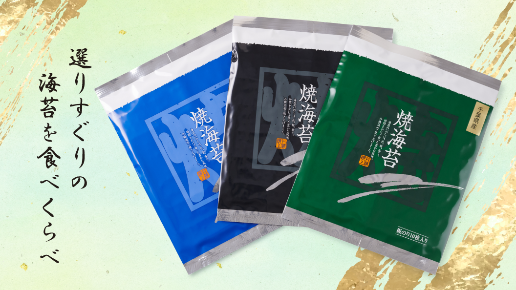 有名漁場のなかから選りすぐりの千葉県産・愛知県産・福岡県産の海苔をお届けいたします。この機会に自分の好みの味を知り、お気に入りの海苔を見つけてみませんか?