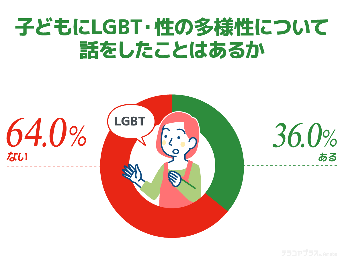 LGBT・性の多様性について、子どもたちにはいつから話すのがよいと保護者は考えているのでしょうか。まず保護者に、「自ら子どもにLGBT・性の多様性について話をしたことはあるか」と聞いたところ、「ある」と答えたのは約3割超(36.0%)でした。