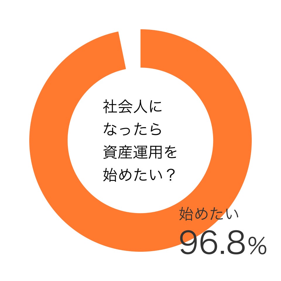 質問「社会人になったら資産運用を始めたい?」で、回答割合は「始めたい」が96.8%。