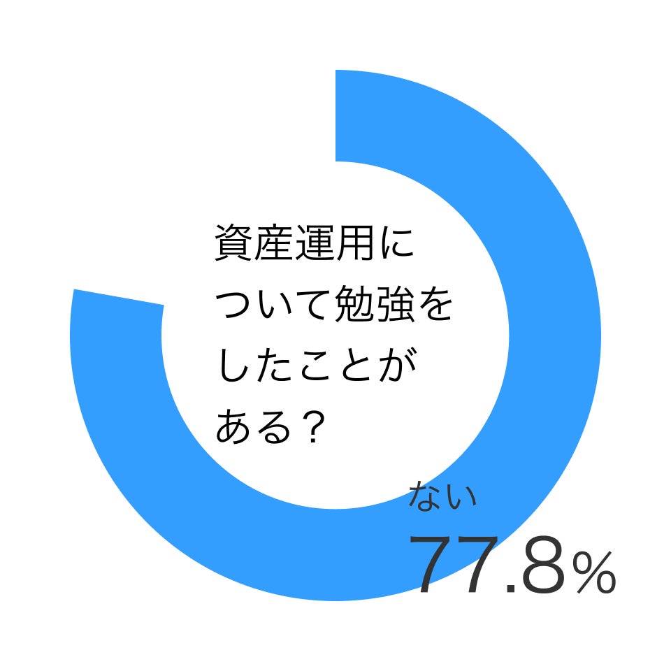 質問「資産運用についての勉強をしたことがある?」で、回答割合は「ない」が77.8%。8割近くの回答者が資産運用についての勉強をしたことがないという結果となりました。