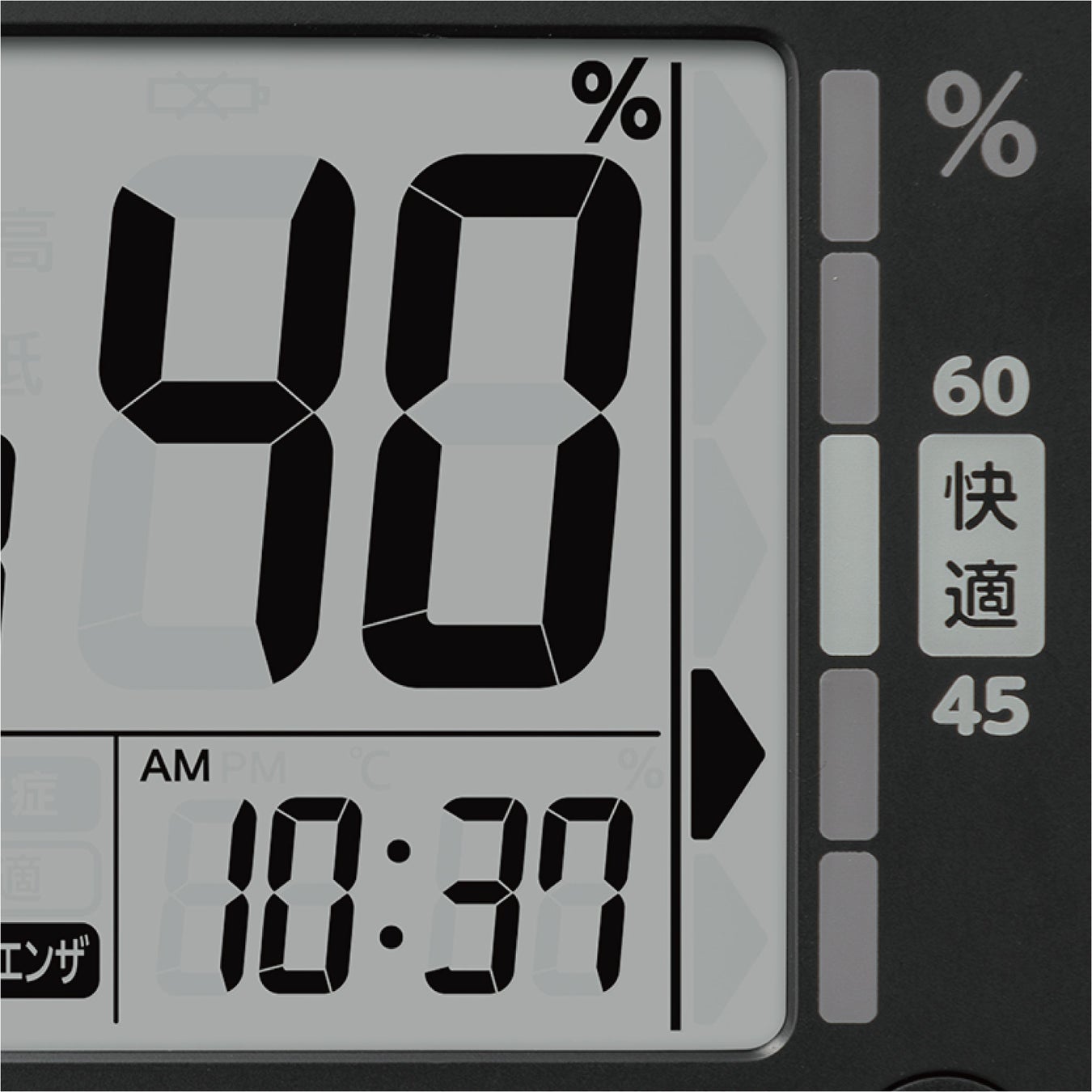 毎日の体調管理に役立つ環境目安表示付きの高精度デジタル温湿度計です。快適な温度・湿度の範囲が一目でわかり、快適なくらしをサポートします。2023年5月に発売した白パール色が大変ご好評につき、ご要望の多かった黒色を追加いたしました。お部屋の雰囲気に合わせてお選びいただけます。