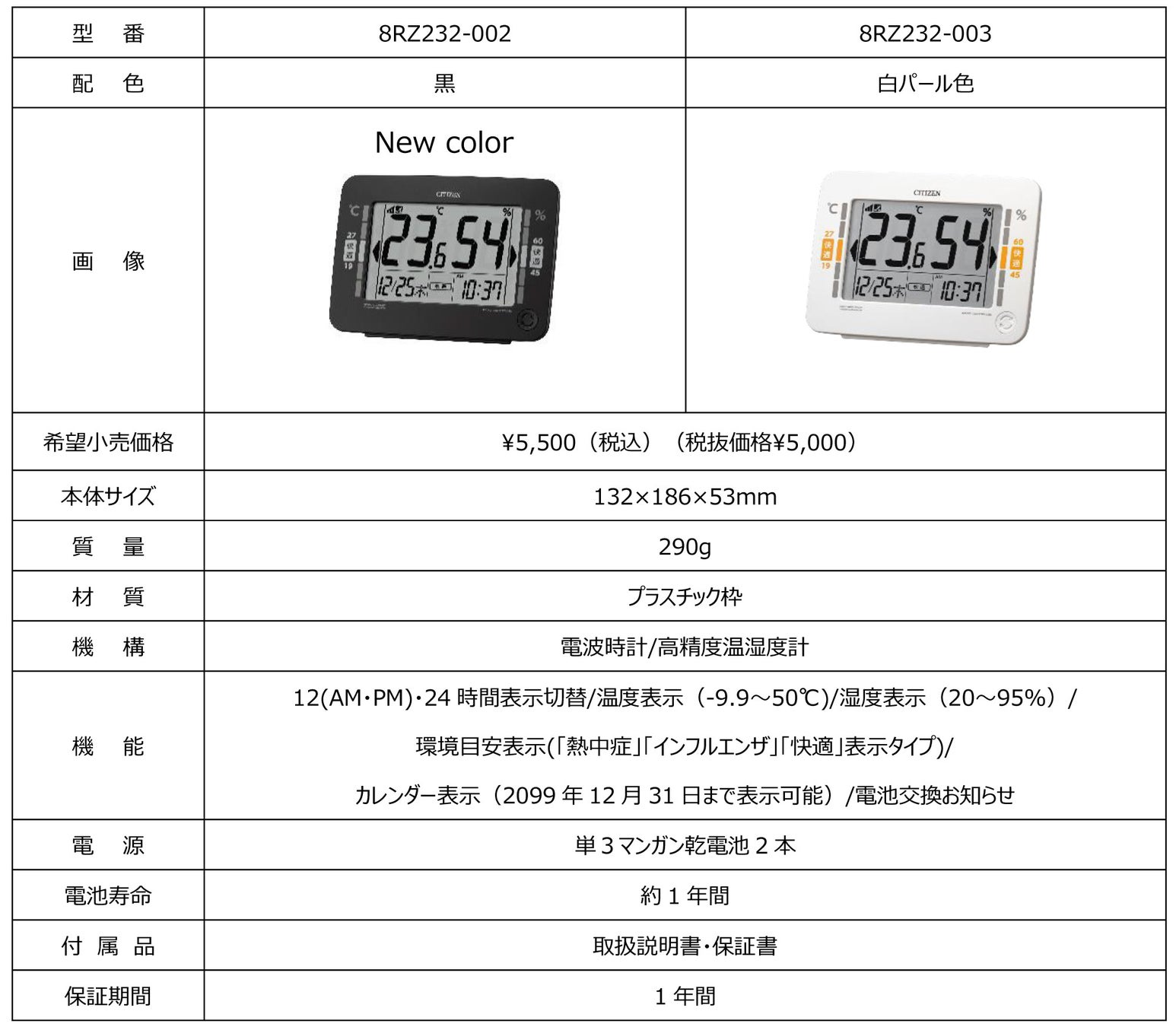 リズム株式会社(取締役社長 湯本武夫)は、毎日の体調管理に役立つ環境目安表示付きの高精度デジタル温湿度計の新色(黒)「8RZ232-002」を3月初旬より発売いたします。