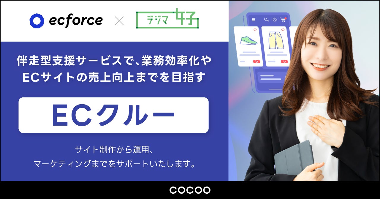「人財」×「デジタル」事業で社会のDX化を支援するコクー株式会社(本社:東京都千代田区、代表取締役CEO:入江 雄介、以下:コクー)は、株式会社SUPER STUDIO(本社:東京都目黒区、代表取締役 CEO: 林 紘祐、以下:SUPER STUDIO)が提供する統合コマースプラットフォーム「ecforce」を導入する事業者に向けて、「ecforce」を活用したサイト制作から初期設定や運用、マーケティングまでをコクーのDX人財「デジマ女子(R)」が伴走型で支援する「ECクルー」のサービス提供を開始いたします。