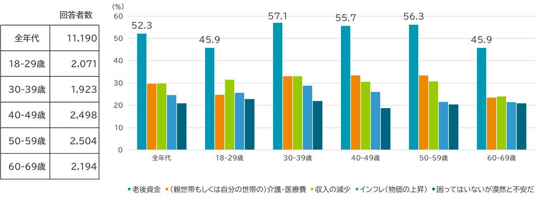 すべての年代において“お金に関する不安”のトップは「老後資金」