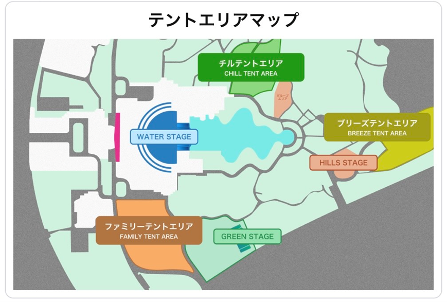 「ファミリーテントエリア」は、18歳未満のお子様連れのファミリーの方のみご利用(購入)いただけるエリアです。 そして「チルテントエリア」「ブリーズテントエリア」はどなたでもご利用(購入)いただけます。
