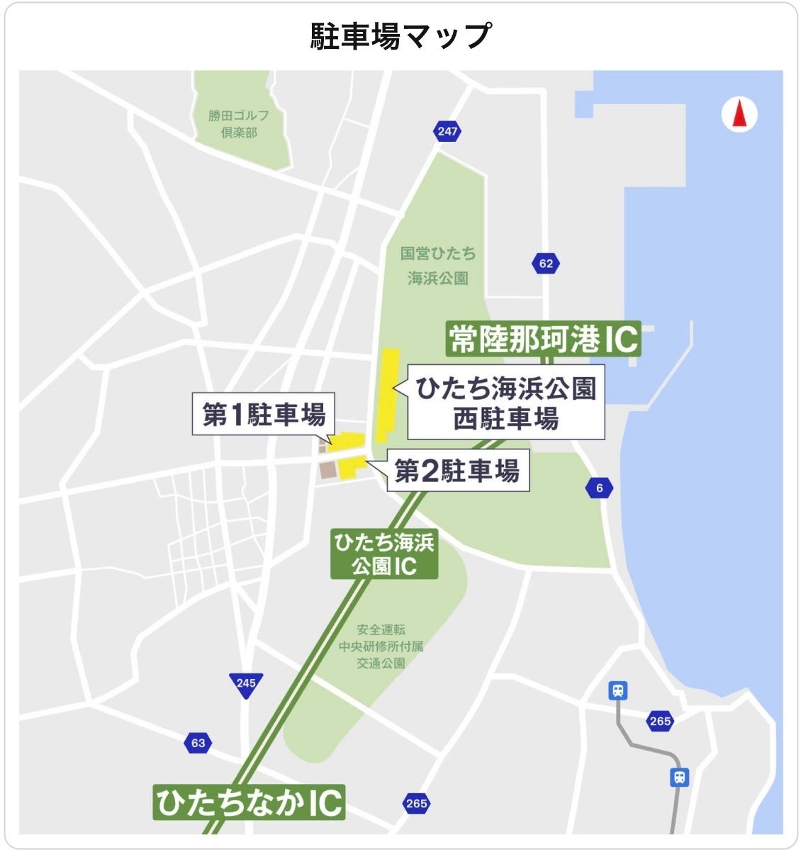 ・貸出駐車場:国営ひたち海浜公園 西駐車場/第1駐車場/第2駐車場
