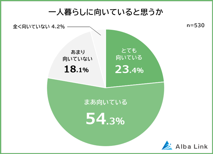・一人暮らしに向いていると思う人は77.7%
