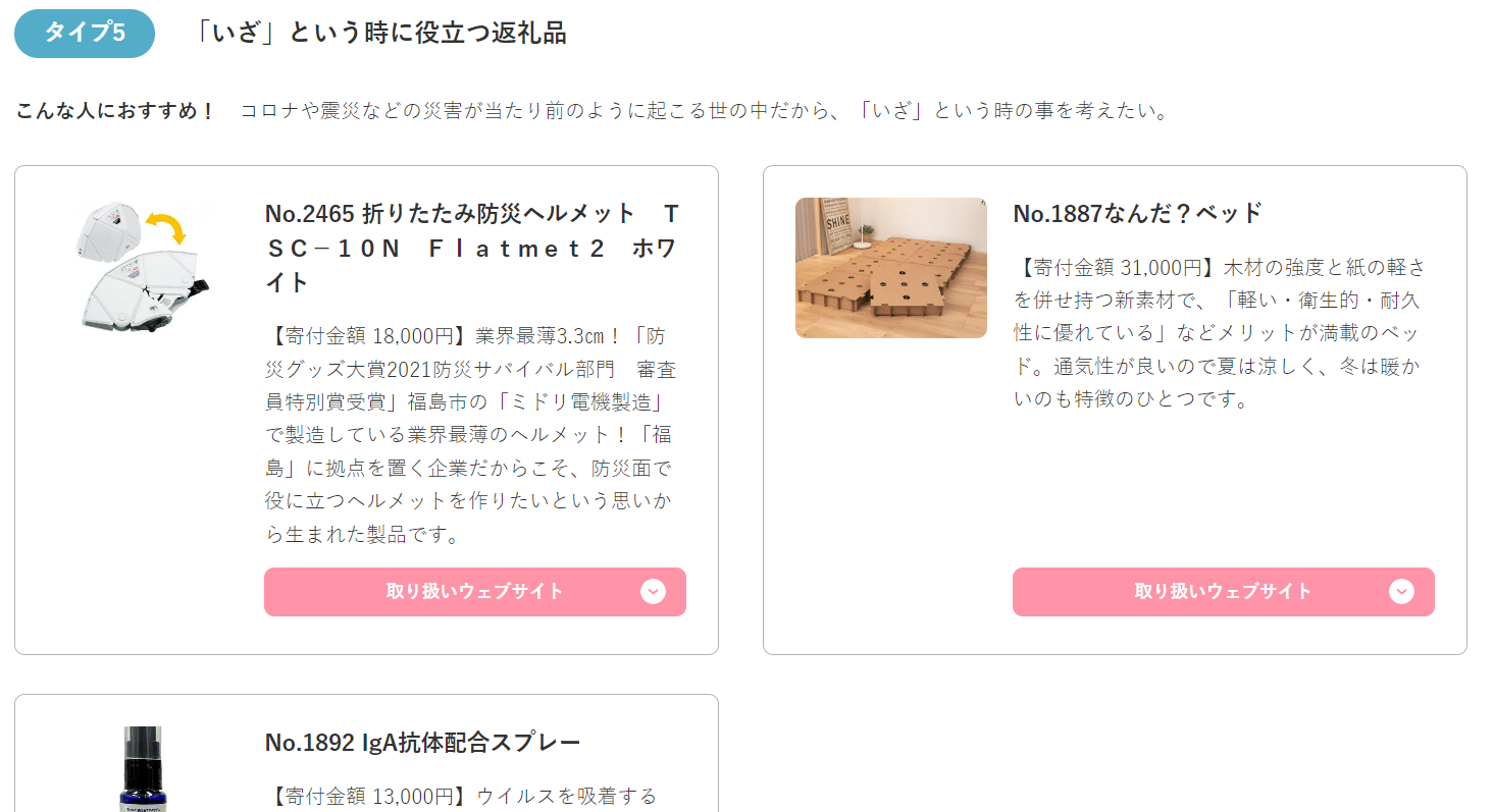 - タイプ5 「いざ」という時に役立つ返礼品