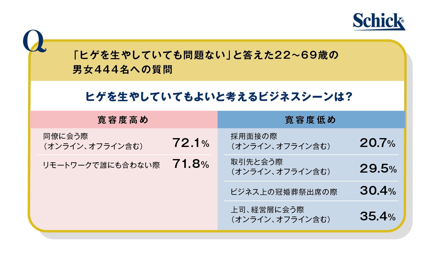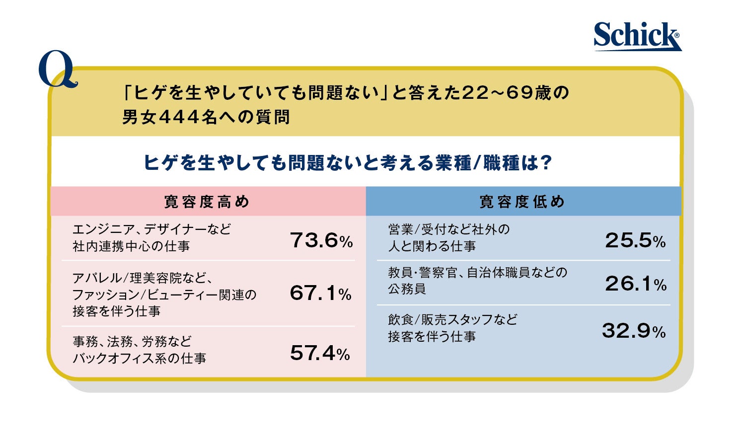 ● 調査対象③:「ビジネスシーンによっては、自分らしく整えられていればヒゲを生やしていても問題ない」と答えた22~69歳の男女444名