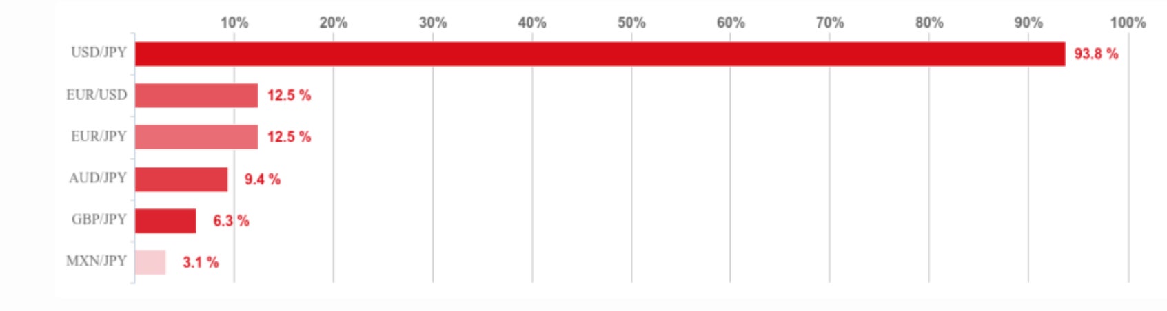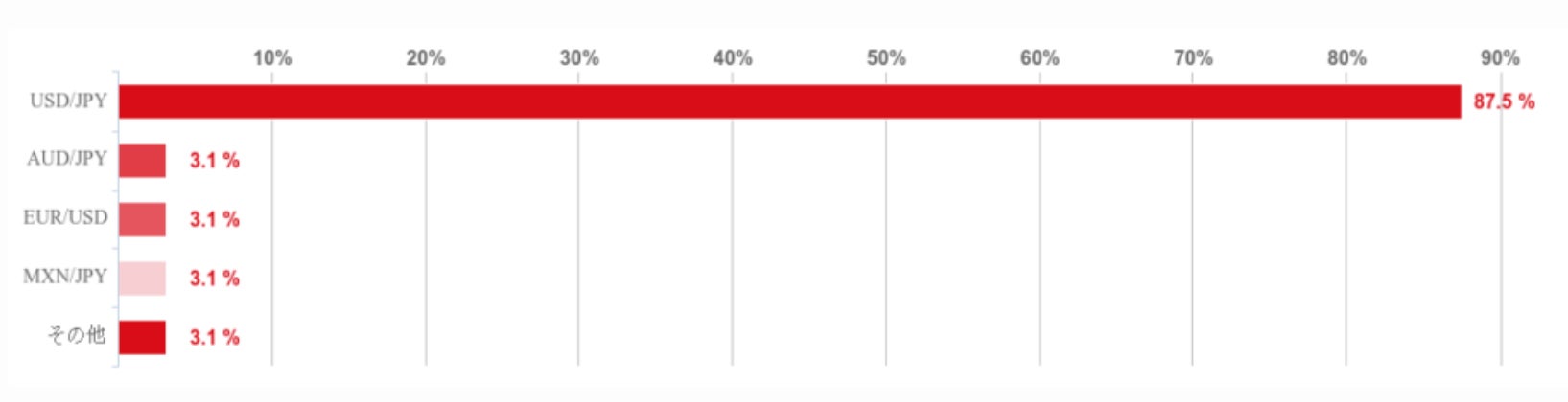 アンケートによれば、主婦たちが推奨する通貨ペアには一定の傾向が見られる。最も多く推奨されているのはUSD/JPYであり、87.5%とダントツで支持を集めている。