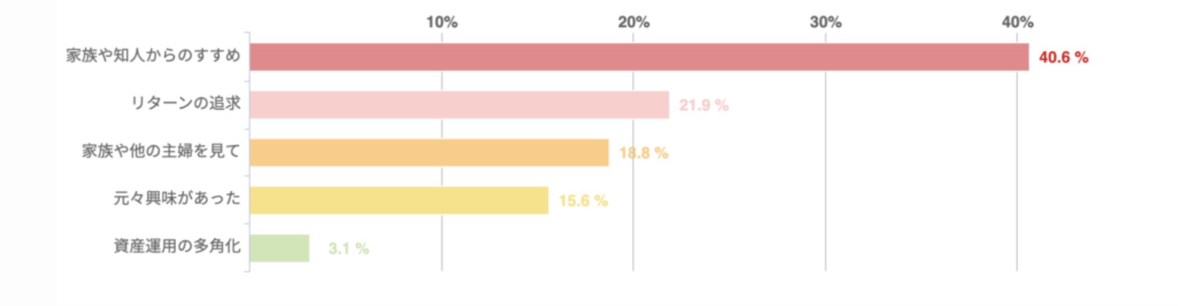 アンケートによれば、主婦がFXを始めるきっかけとなったのは家族や知人からのすすめが最も多いことがわかる。