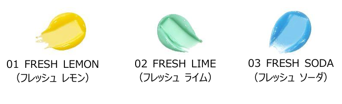 (左から:01 FRESH LEMON/02 FRESH LIME/03 FRESH SODA)