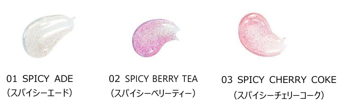(左から:01 SPICY ADE/02 SPICY BERRY TEA/03 SPICY CHERRY COKE)