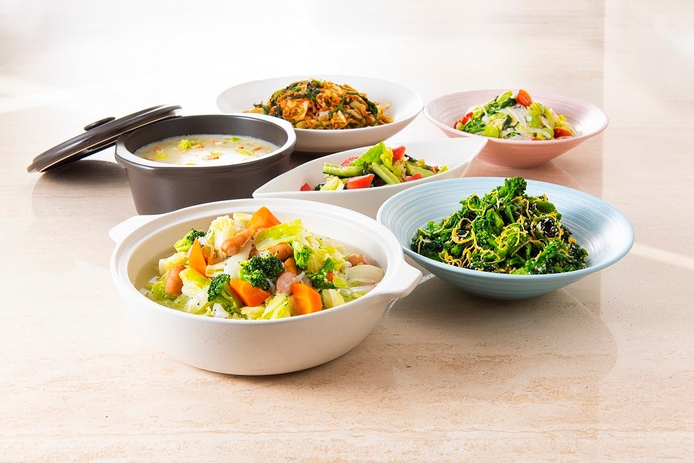 左から「春野菜のポトフ」、「春野菜のレモンクリームマリネ」、「桜えびと春キャベツのクリームスープ」