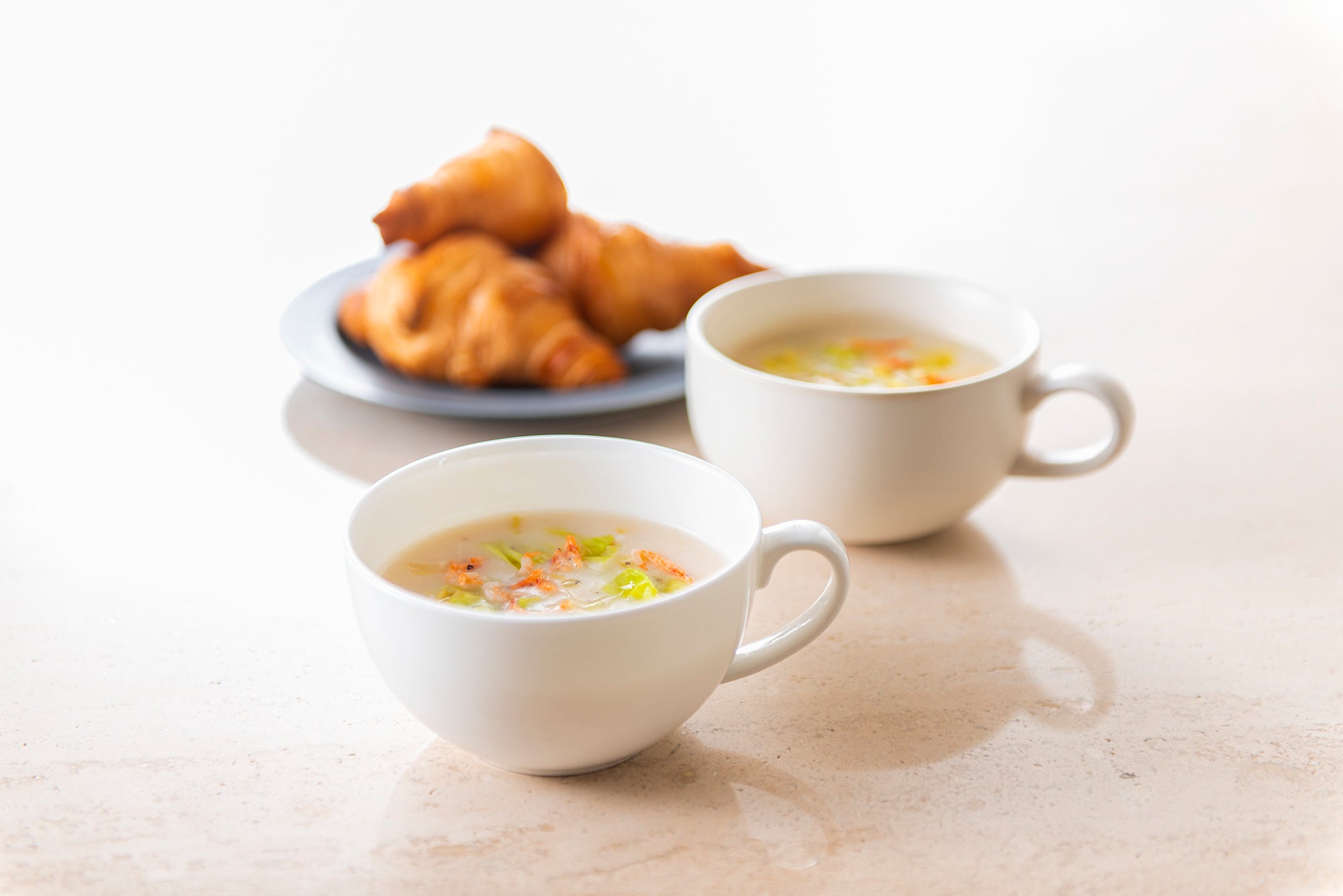 コトコトやわらかく煮込んだ春キャベツと香ばしい桜えびのミルククリームスープです。