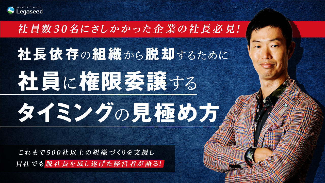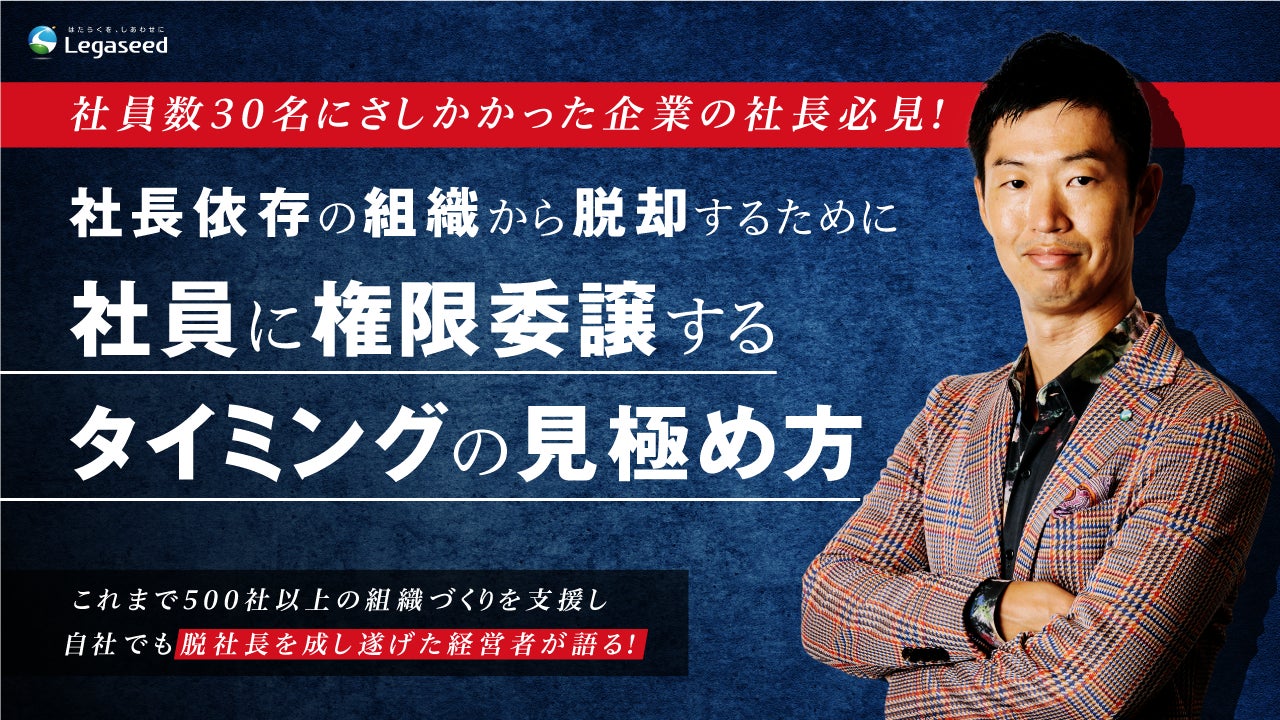 どうすれば社長が本来の業務に集中し、会社を成長させることができるのか?今回は「社長依存の組織から脱却するために社員に権限委譲するタイミングの見極め方」をテーマに、経営課題の解決方法をお伝えします。