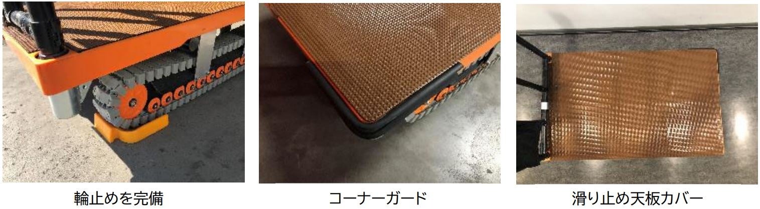 キャスターでは走行できないシーンで運搬でき、負荷が少ない搬送が可能。