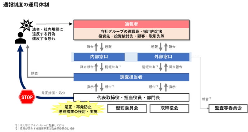 当社の役職員だけでなく、採用内定者、投資先・投資検討先、お客様、取引先など、当社の業務に関係するすべての方が、本制度を利用して通報することができます。