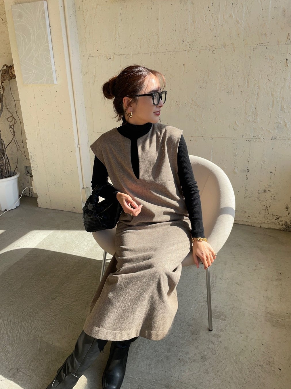 [低身長/高身長サイズ有]ヘリンボーンキーネックジャンパースカート