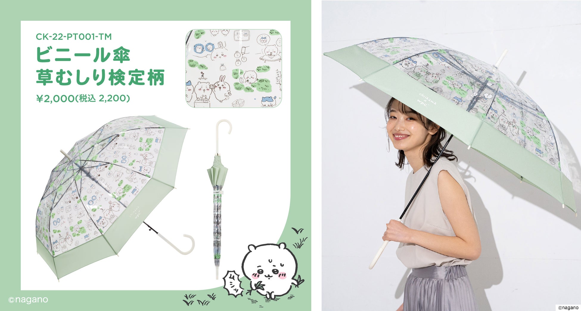 ちいかわ×Wpc. 草むしり検定が傘に?!ちいかわ新作ビニール傘2種類発売