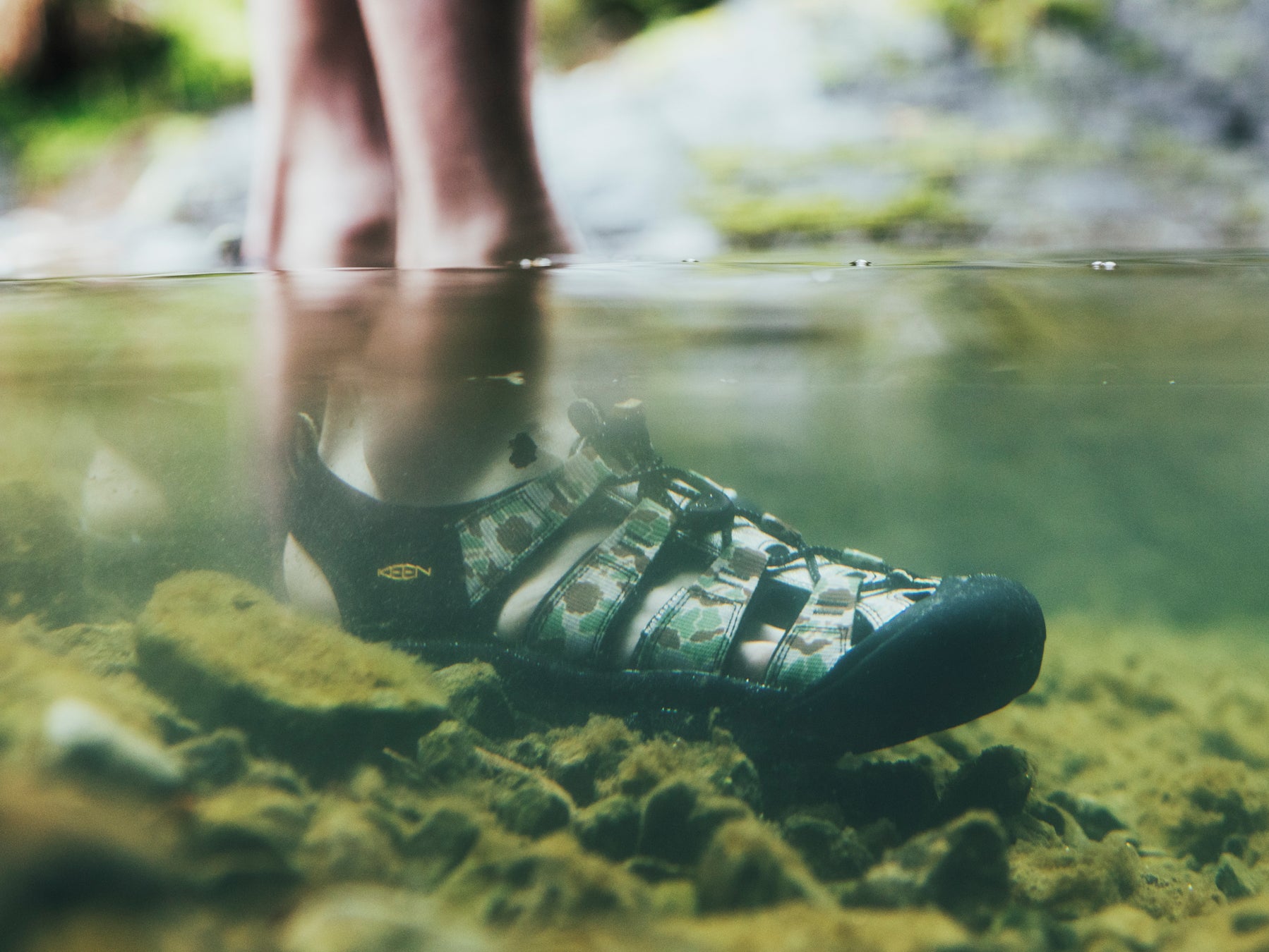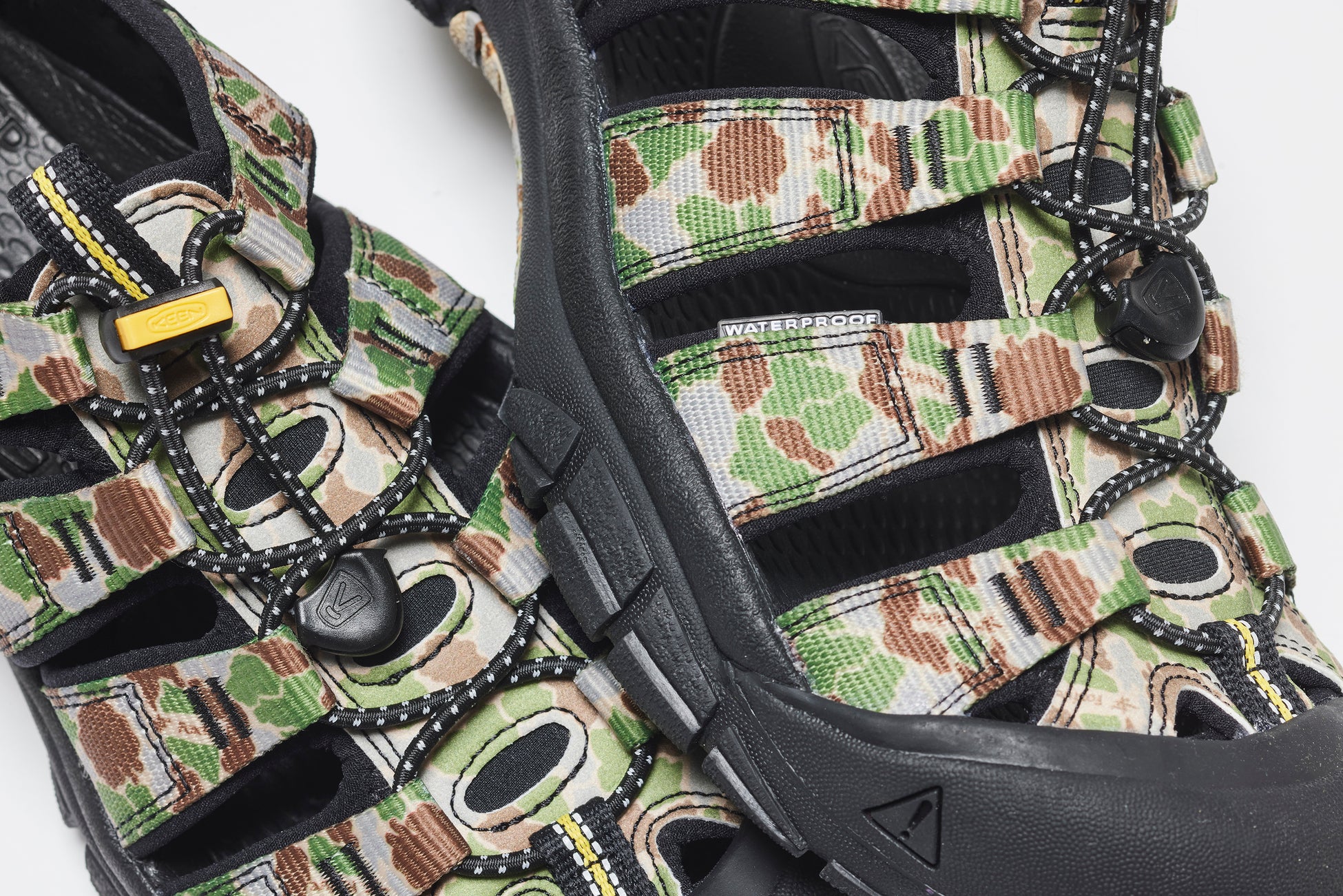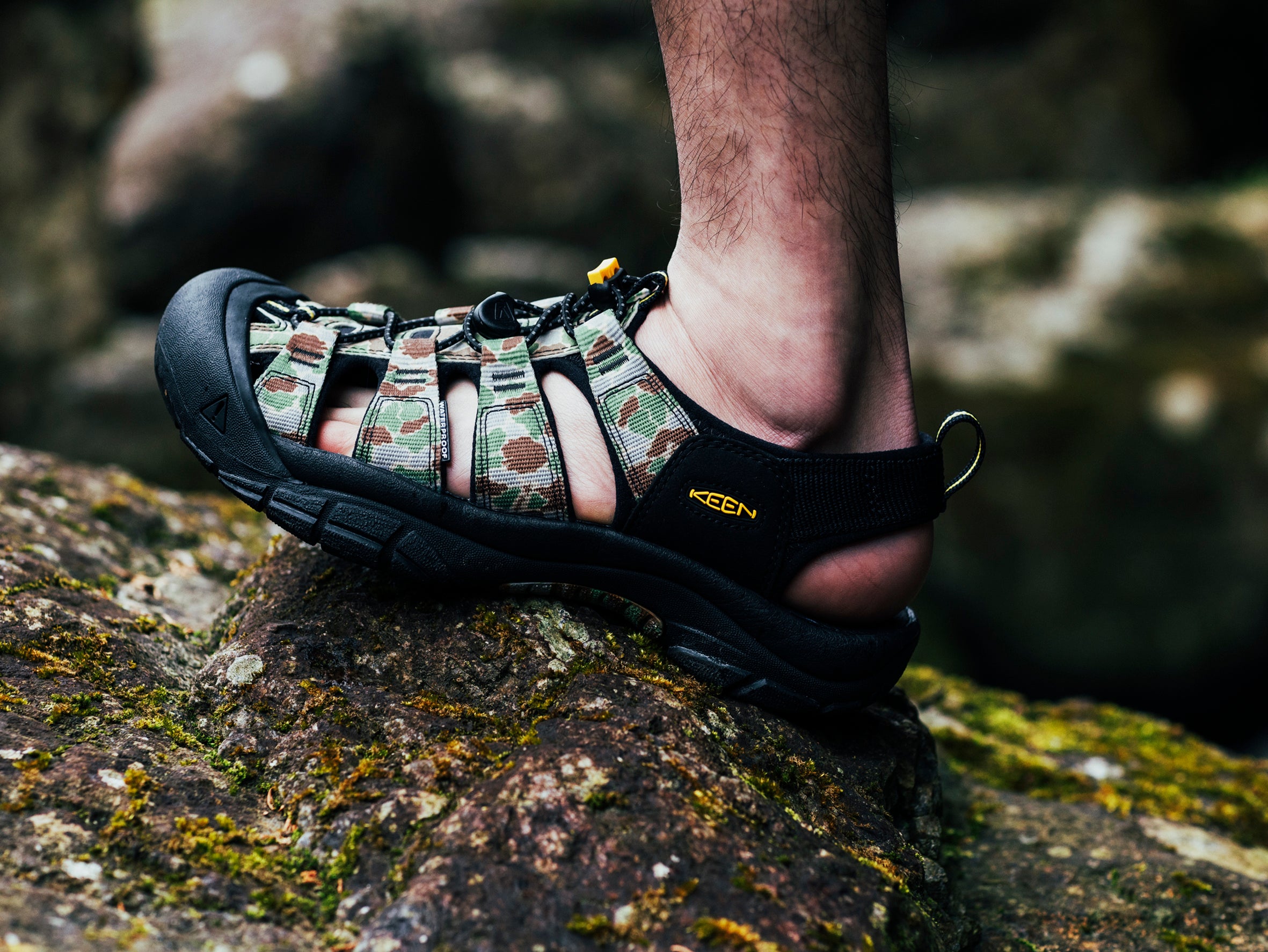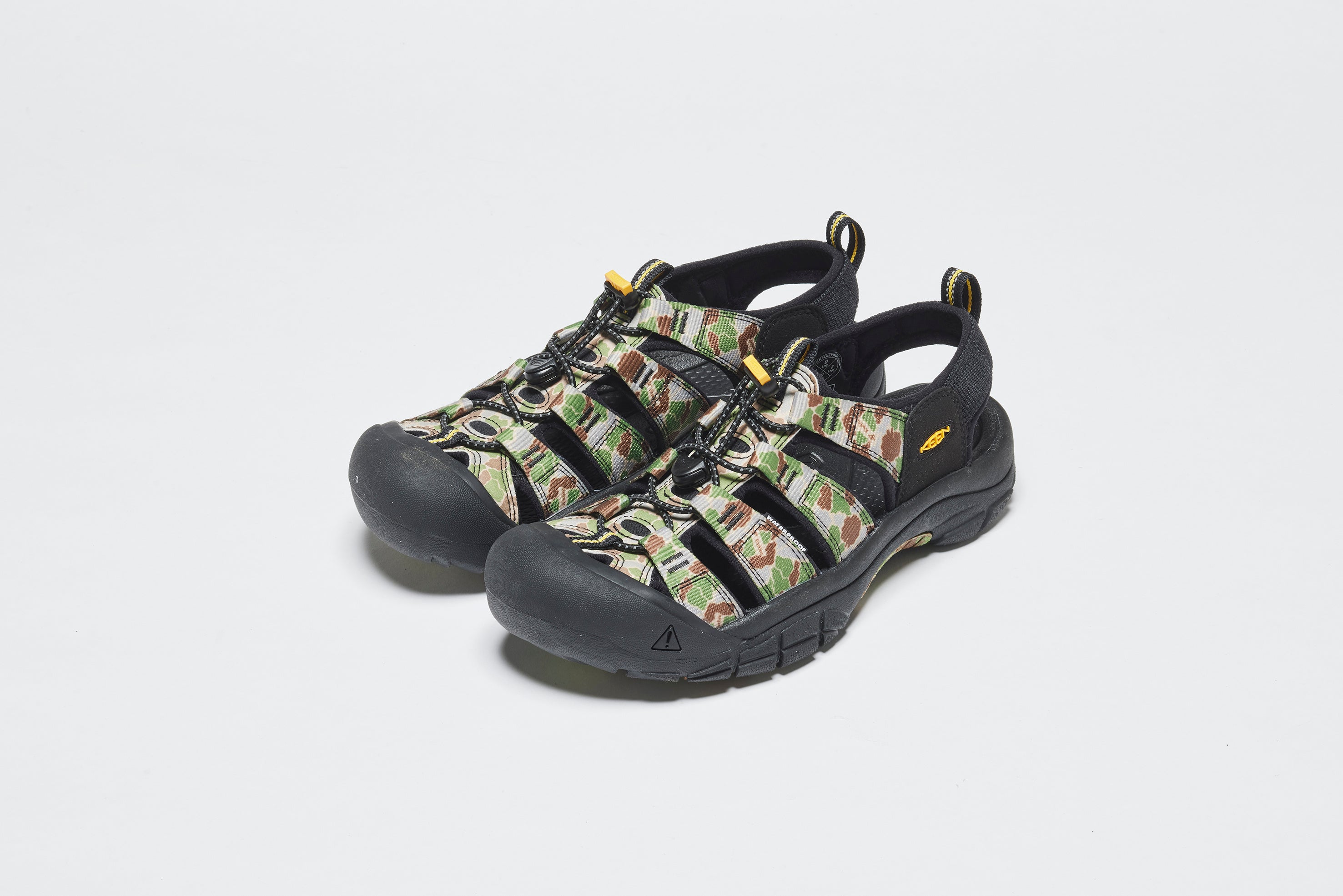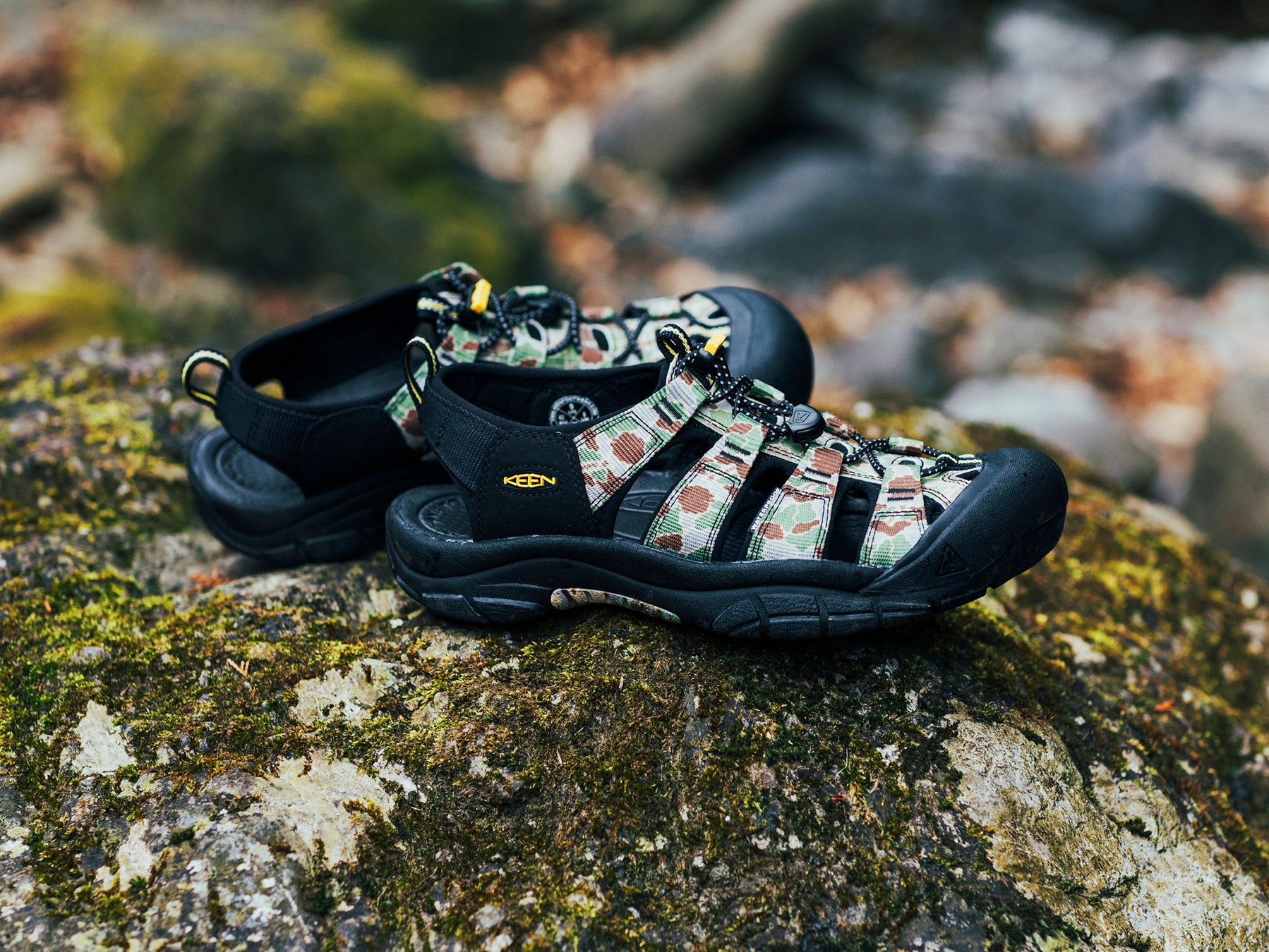 両者のコラボレーションに選ばれたモデルは、ハイブリッド・フットウェアという言葉を生み出した、KEENプロダクトの真骨頂、靴を超えたサンダルと呼ばれているKEEN創業モデルNEWPORTを、より水辺でのアクティビティーに向けて展開している「NEWPORT RETRO」。
