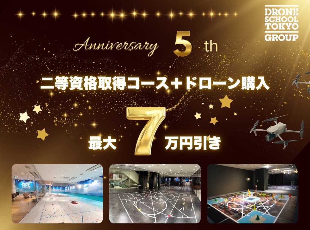 ドローンスクール東京5周年記念!最大7万円がお得になるキャンペーン開催中!