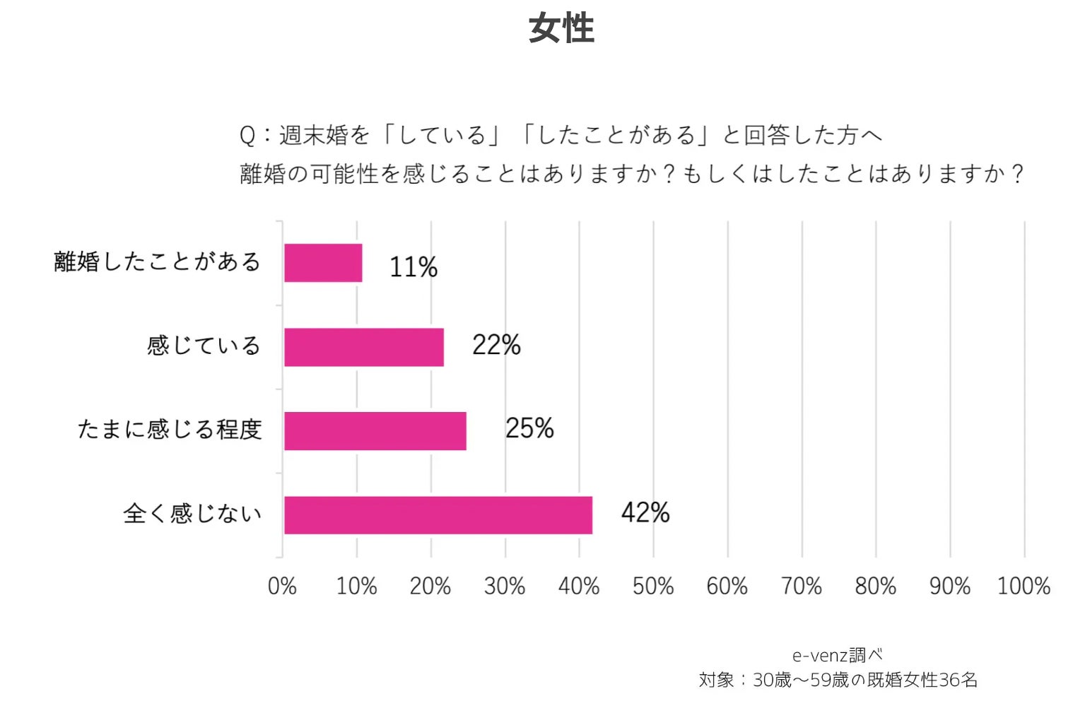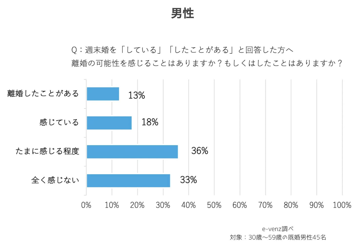 会う時間を少ない週末婚は、すれ違いが生じ会話する時間が少ないため、このような結果になったと考えられます。