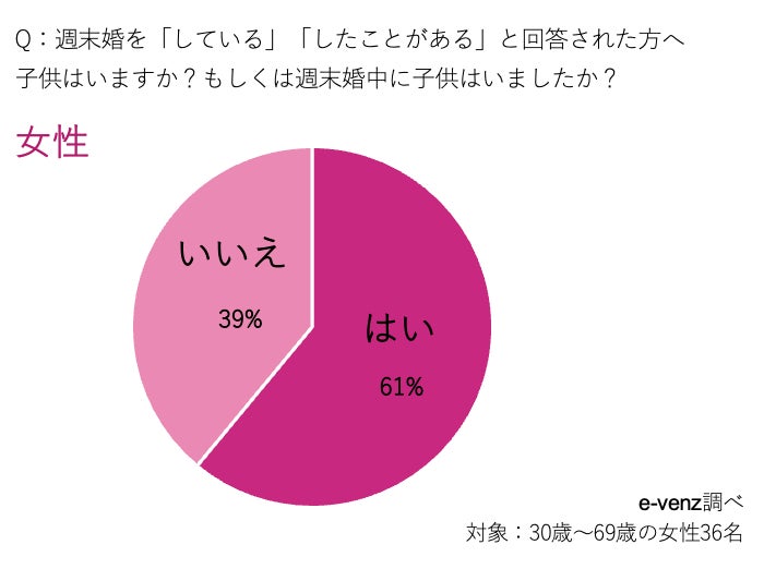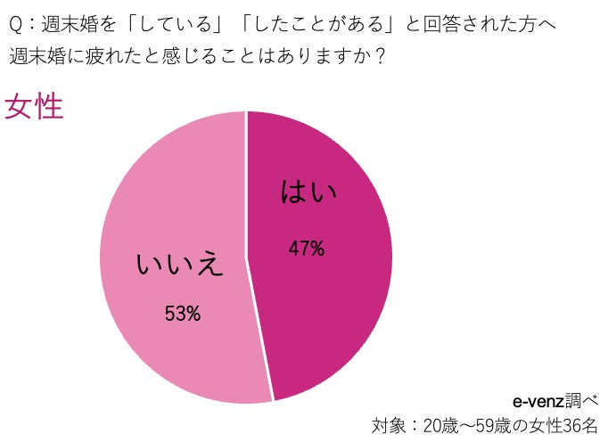 婚活・恋活や街コンなど中心とする男女の出会いメディアe-venz(イベンツ)を運営するノマドマーケティング株式会社(所在地:東京都渋谷区、代表取締役:三輪賢治)では、30代,40代,50代の既婚者1,000名を対象に週末婚についてのアンケートを実施しました。