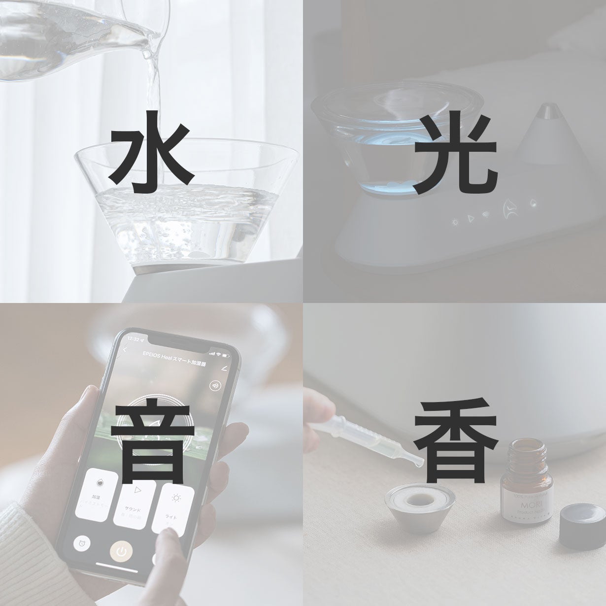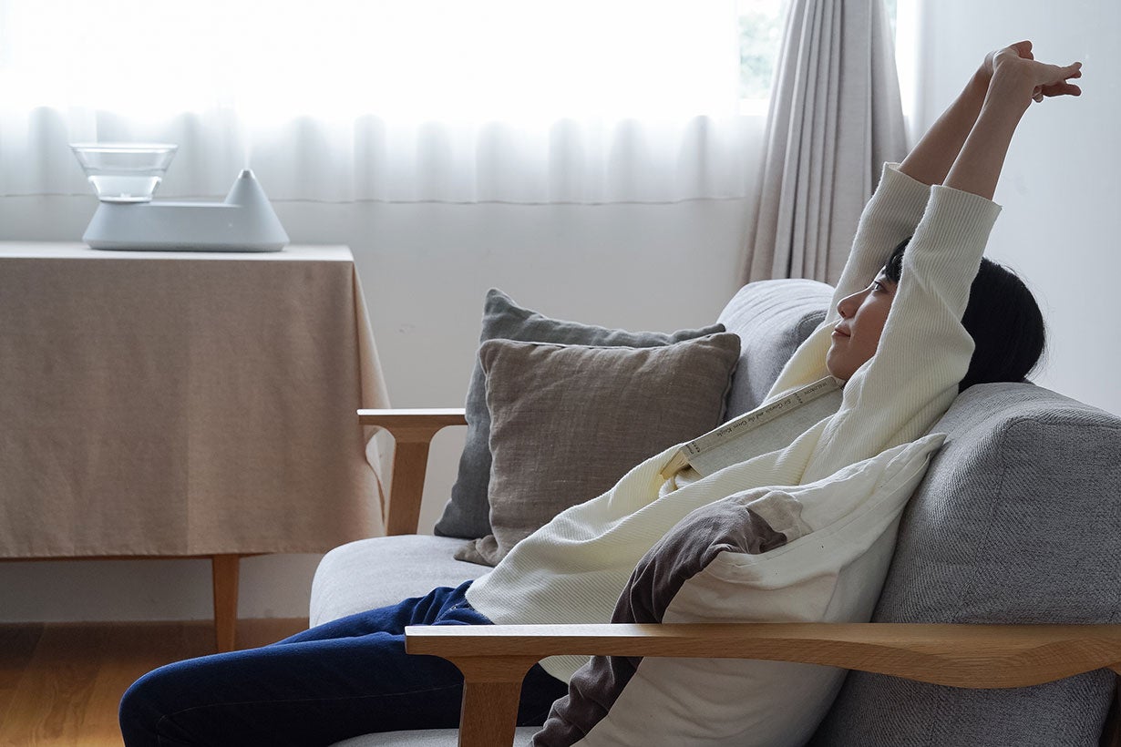 余白時間の瞑想はもちろん、乾燥しやすい秋冬のストレッチや筋トレの際に。加湿量は標準以上が推奨。ルーティンに集中できるようサウンド機能もどうぞ。