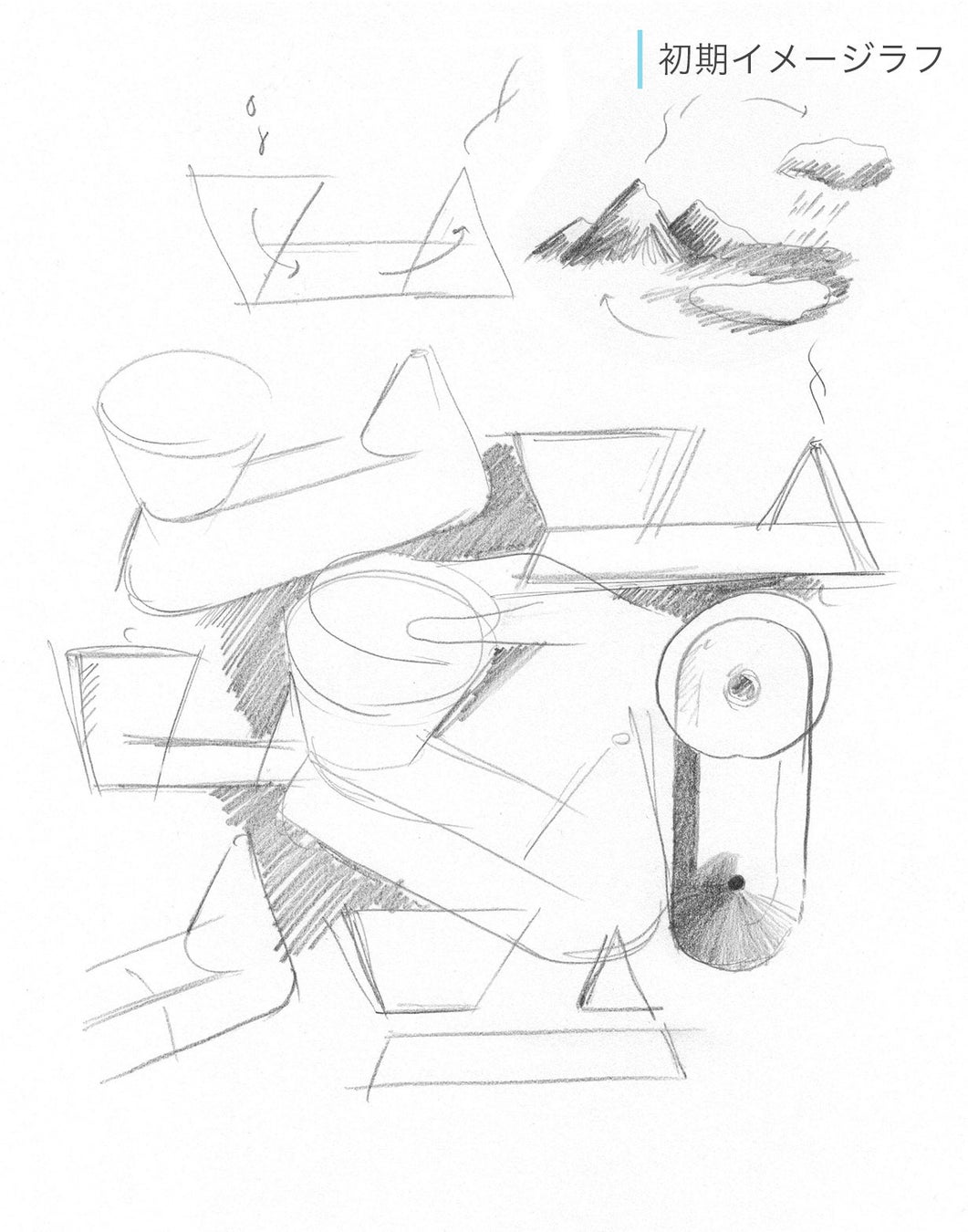 「自然の中にある変化」をベースに、空気に潤いを与える加湿器に必須である水の存在に着目。気化、降雨といった自然界での水の循環をモチーフとしています。また時の流れから着想した砂時計の形状も特徴的な水を蓄えるガラスタンク部分の意匠としています。
