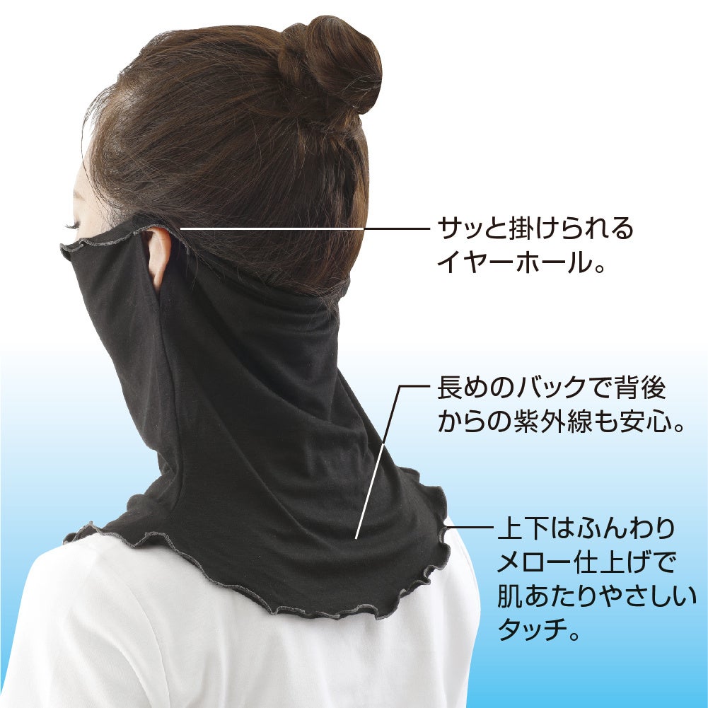 ゴム入りギャザーがやさしくフィット。長めのバックで背後からの紫外線もしっかりガードします。