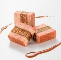 桜の季節に合わせた、ほろほろビスケットに、とろけるキャラメルと香ばしいナッツを繰り合わせたエンガディナーです。春、桜で満開になる宿河原店のわきに流れる『宿河原二ヶ領用水』に桜がきれいに散った様子をイメージし、生地に桜のペーストをちりばめた逸品です。