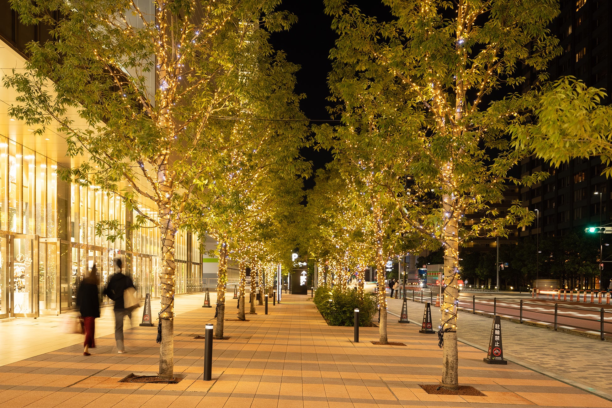 約450mの街路樹と約38,000㎡の緑化エリアを中心に街区全体を彩る約19万球の光