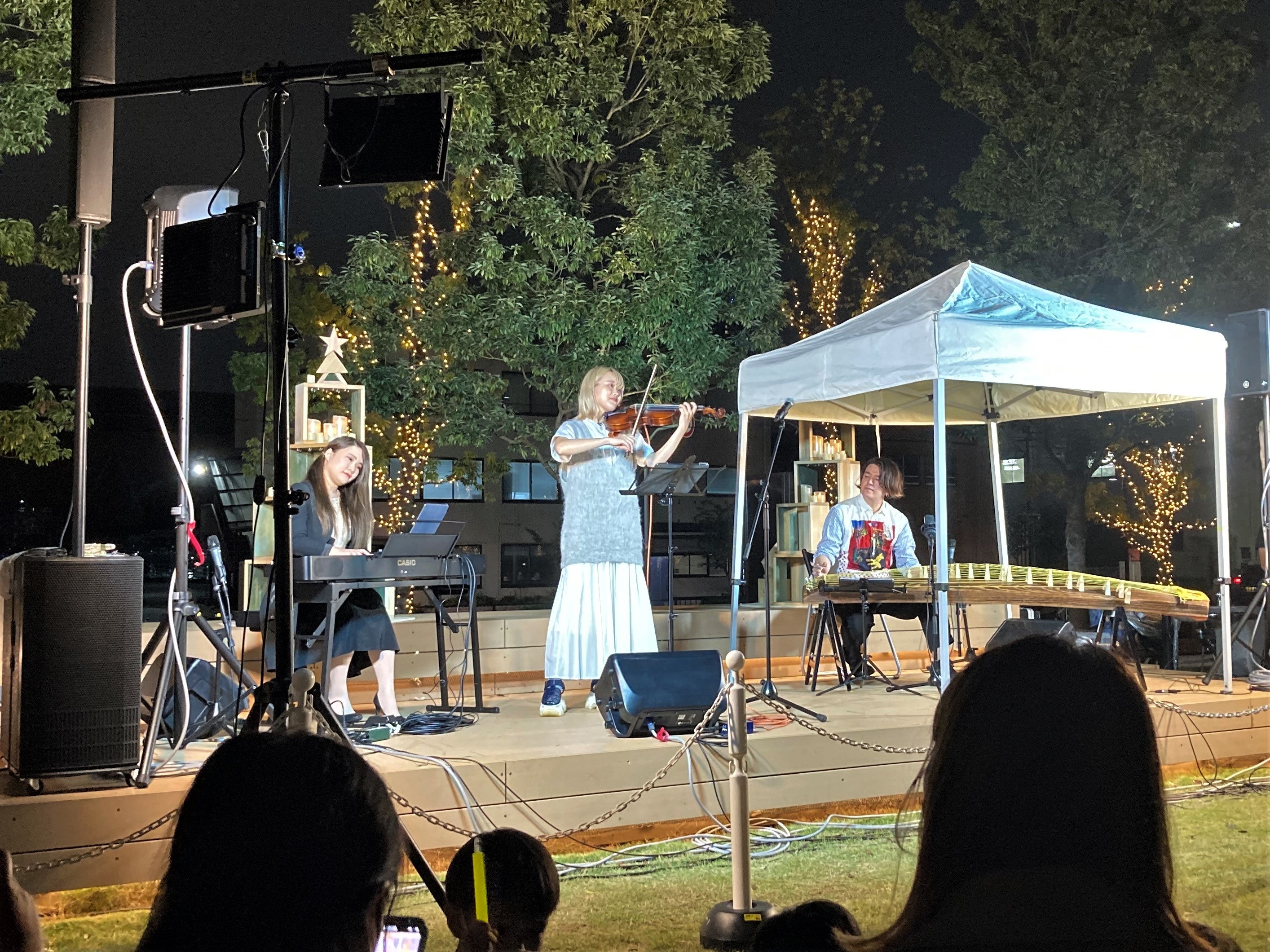 「東京ガーデンシアター」で開催されたMISIAさんのライブツアー公演を記念して2021年11月に植樹されたモミの木も、有明ガーデンのシンボルツリーとして鮮やかにライトアップされています。