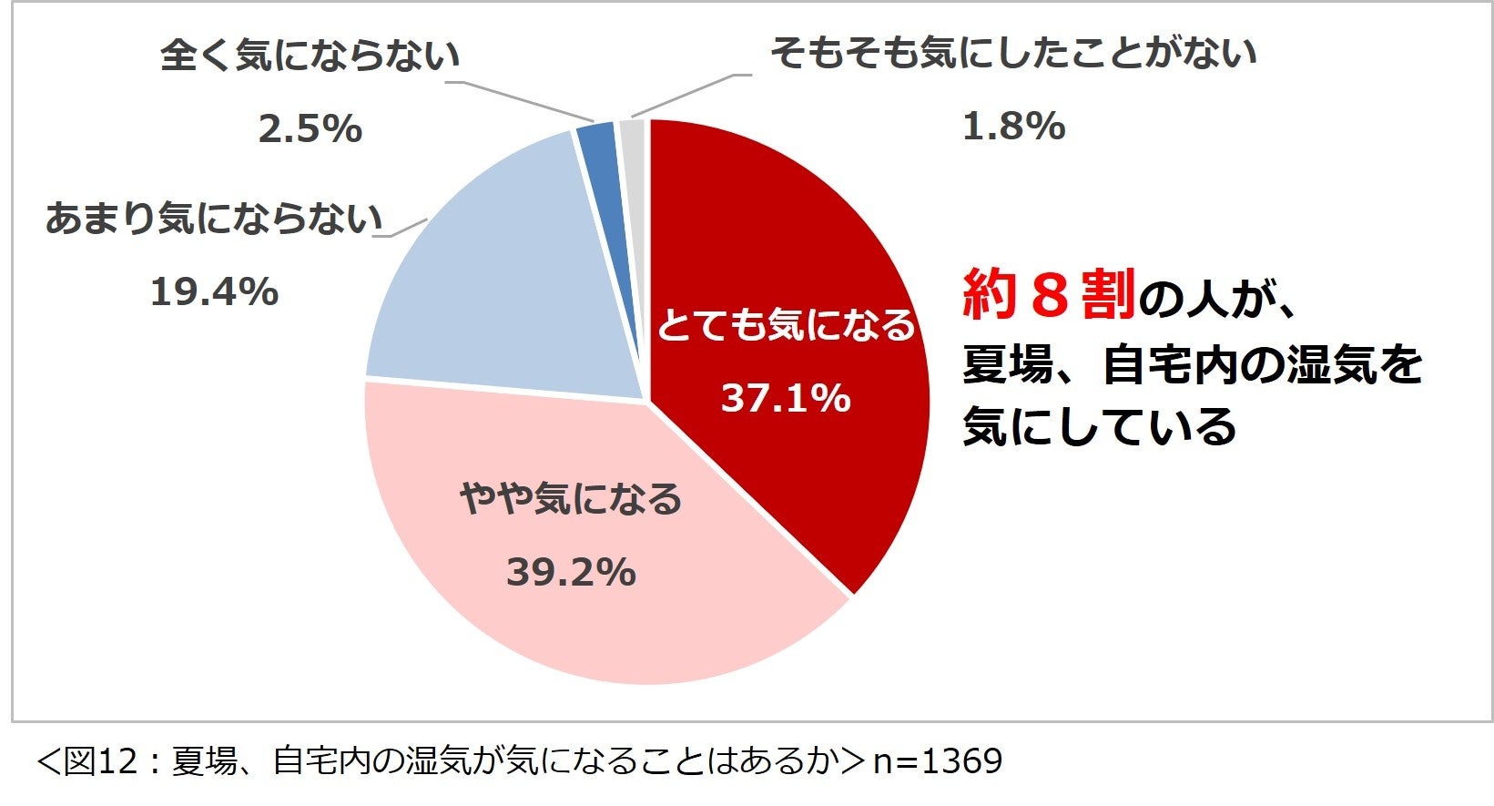 約8割の人が、夏場、自宅内の湿気が気になると回答。