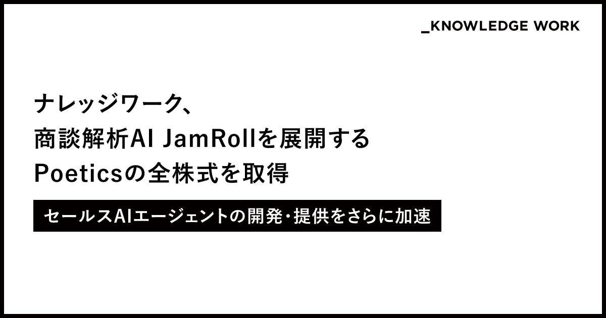 ナレッジワーク、商談解析AI「JamRoll」を展開するPoetics社の全株式を取得。セールスAIエージェントシリーズの開発を加速