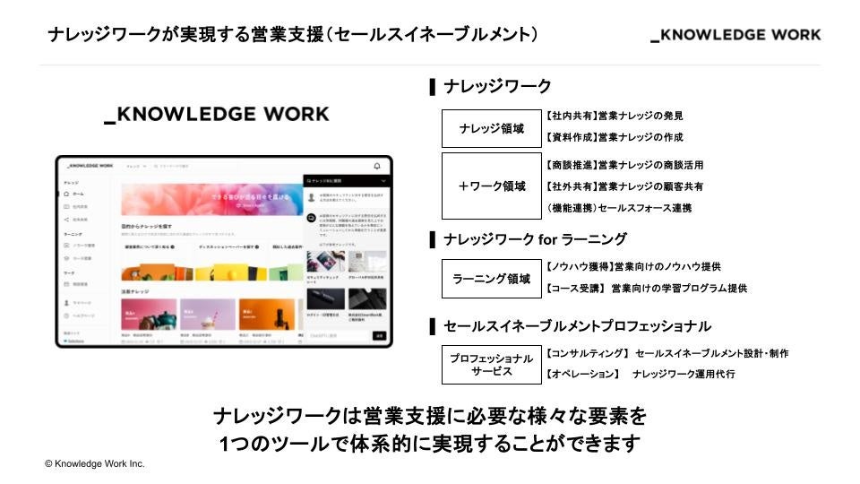 ナレッジワークは、大手企業様向けにセールスイネーブルメントAI「ナレッジワーク」を提供しています。これまで、営業資料の発見・共有を支援するナレッジ領域プロダクトや、商談シナリオの作成・資料準備を支援するワーク領域プロダクトを通じて、営業担当者の商談前プロセスを支えてきました。