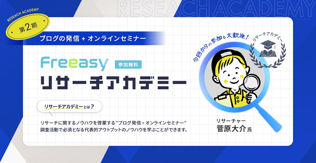 2022年4月にスタートし、2022年9月29日のセミナーをもって大好評のうちに終了した「Freeasyリサーチアカデミー(第1期)」。このたび2年ぶりに、第2期を開催することが決定いたしました!