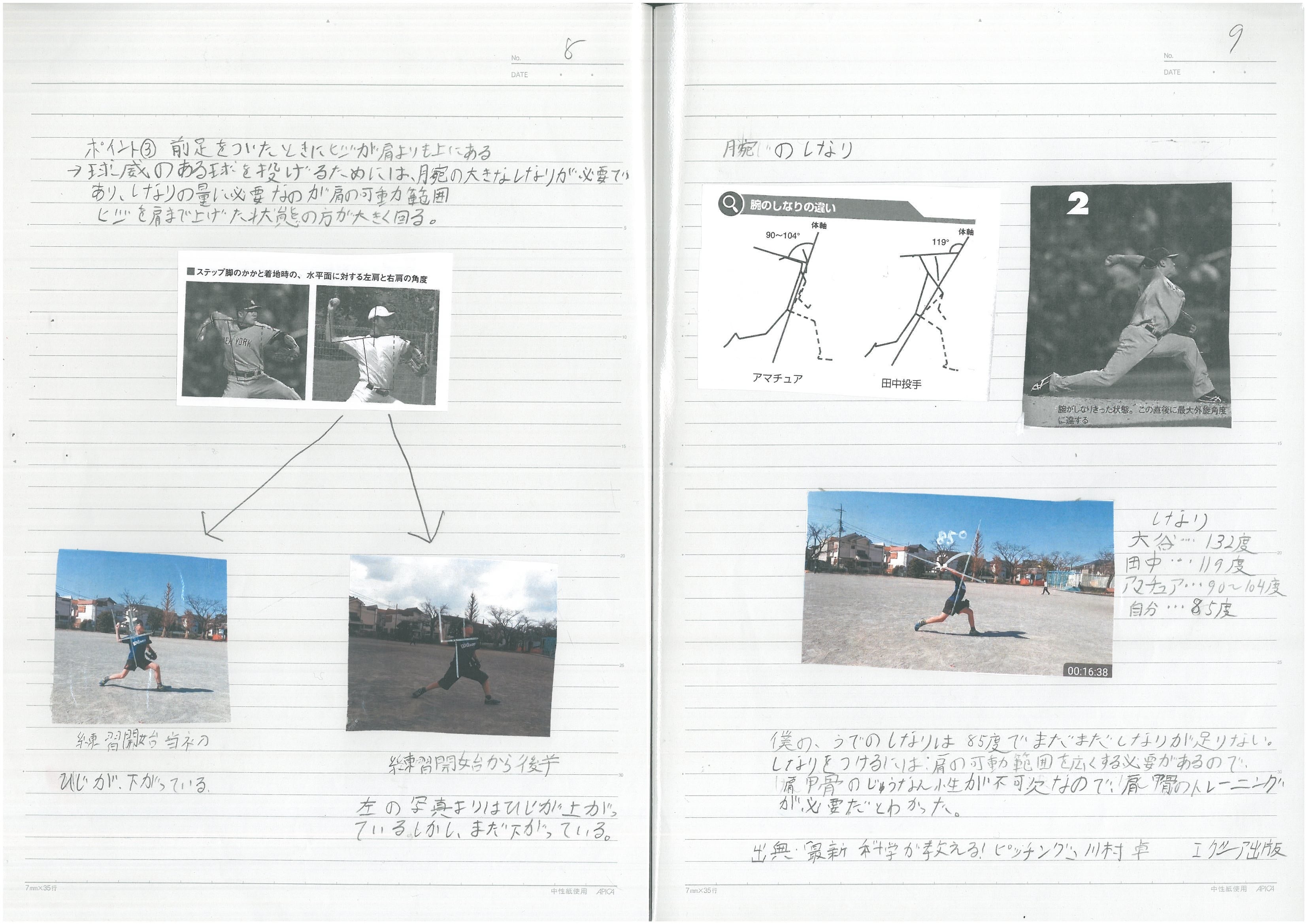 野球を科学的に研究している本を参考に、目標球速、速い球を投げるポイントを自分で設定し、ボールの握り方や投球フォームの改善などに取り組んだ。