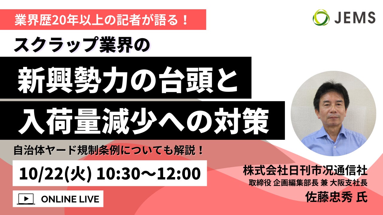 無料オンラインセミナー「スクラップ業界の新興勢力の台頭と入荷量減少への対策」を10/22(火)に開催します