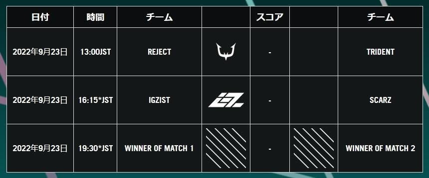 『ROG Masters APAC 日本地域決勝』は日本地域予選を勝ち抜いたチームの「IGZIST」、「TRIDENT」、招待チームの「REJECT」、「SCARZ」の4チームが参加し、準決勝第一試合または第二試合でそれぞれ主催者側で招待したチームと日本地域予選を勝ち抜いたチームがシングルエリミネーション形式で対戦し、最終上位2チームが次のステージ日本地域決勝へ進出します。