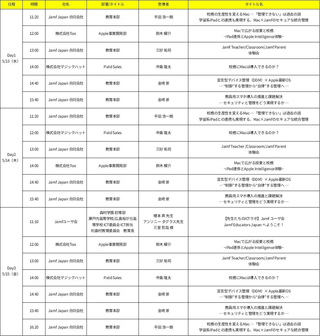 Jamf Japanのブースでは、Macの活用による校務DXの実現、Jamf導入による最適なデバイス管理のポイントなどをテーマとしたミニセッションも開催いたします。